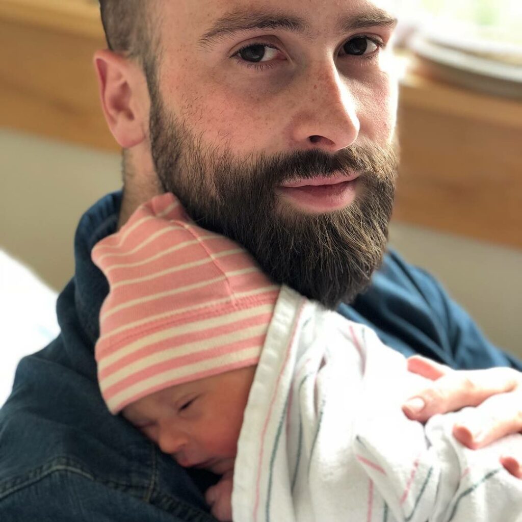 He carries around a sleeping newborn strapped snugly to his chest while he’s doing dishes or picking up the house.